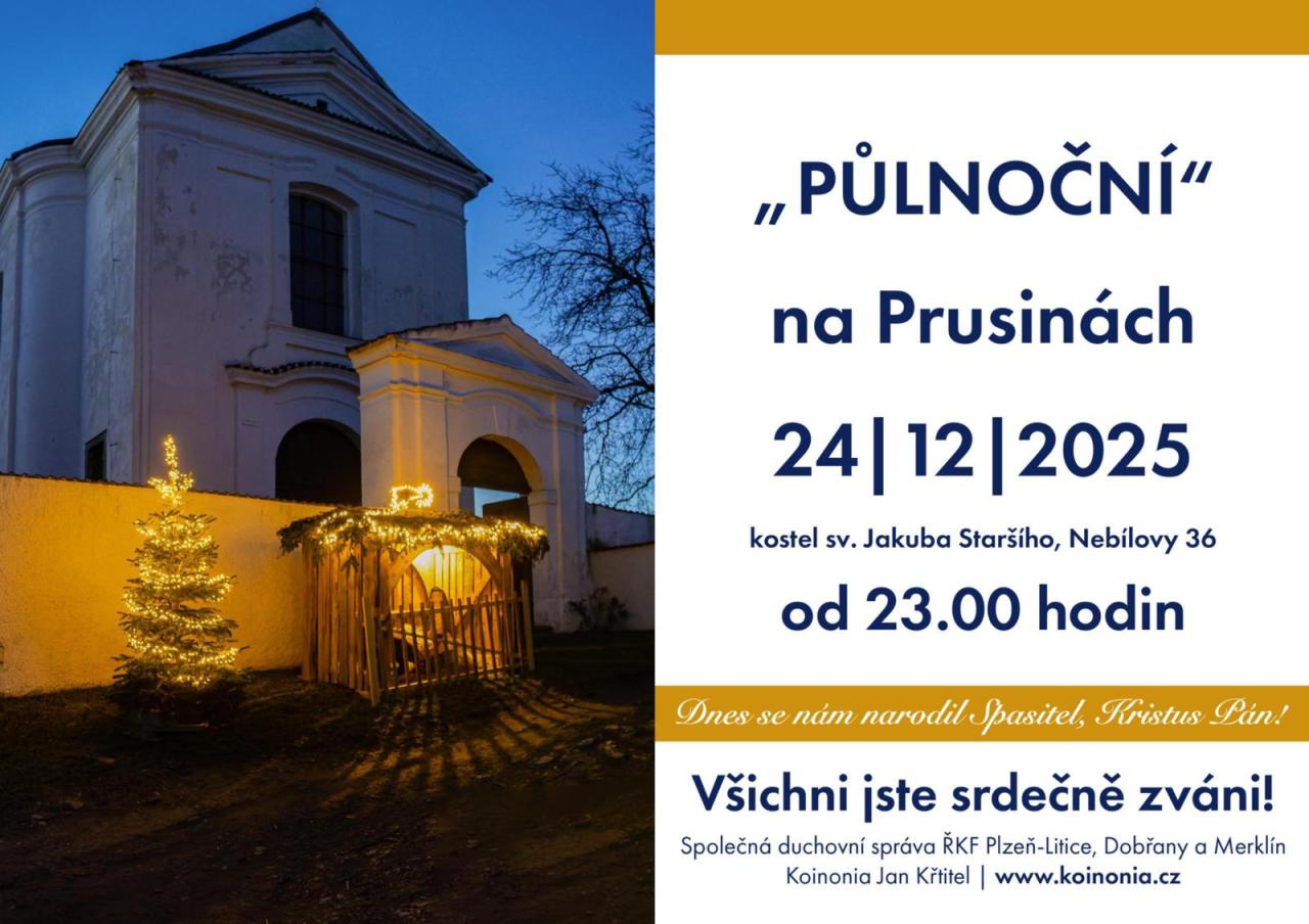 Pozvánka na PŮLNOČNÍ v kostele na Prusinách 24.12.2025 od 23.00 h